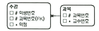 학생은 여러과목을 수강할 수 있으며, 교수는 정해진 한 과목만 강의할 수 있음