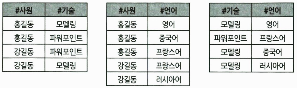 ◀기술과 언어의 연관성이 존재하는 릴레이션/조인종속이 존재하는 릴레이션