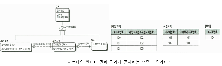 사원이 개인고객을 관리한다는 요건을 서브타입 엔터티 간의 관계로 관리하는 모델이다.